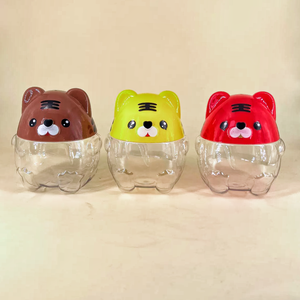 Tarro de almacenamiento de plástico de grado alimenticio con diseño de animales bonitos con tapa para dulces y fabricante de botellas Embalaje que incluye banda de goma